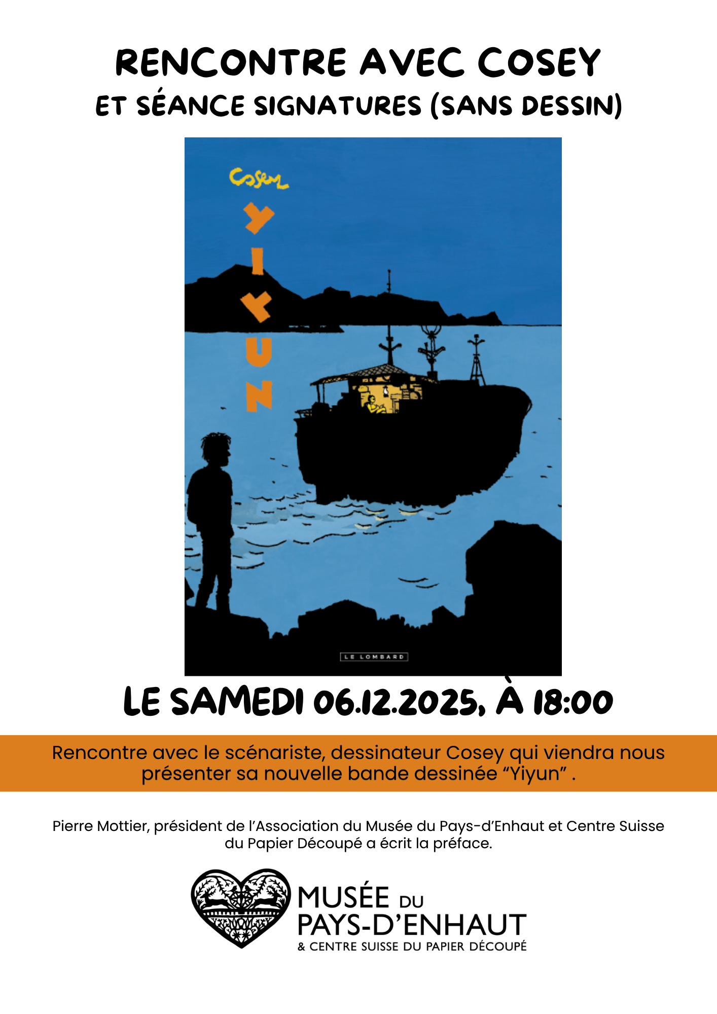 Wir freuen uns, Cosey, mit bürgerlichem Namen Bernard Cosendai, Drehbuchautor und Zeichner, begrüßen zu dürfen, der uns seinen neuen Comic «Yiyun» vorstellen wird, der im Oktober 2025 erschienen ist.